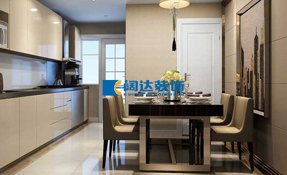 餐廳區(qū)域:餐廳和廚房合為一體,變成了開放式廚房,這也是此區(qū)域的亮點,主要功能和生活舒適度增加了不少,給兒童活動增加了空間。