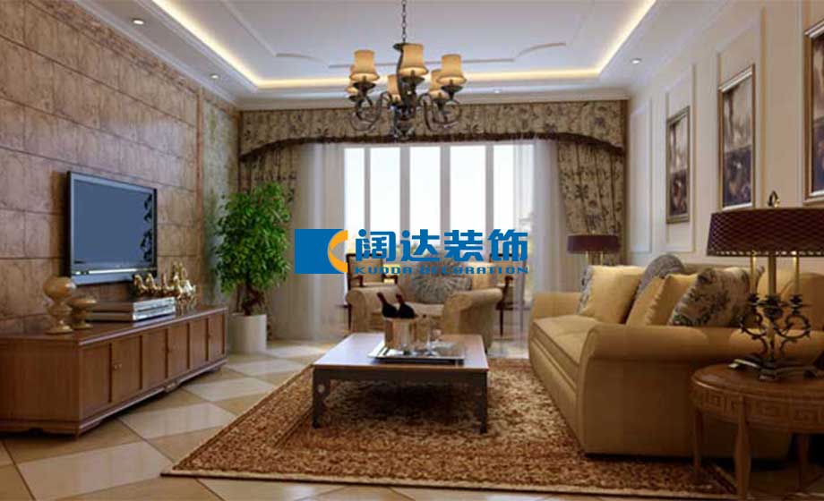 本案的風(fēng)格為輕美式,裝修的特點(diǎn)是簡潔實(shí)用,色彩是明亮環(huán)保,是非常典型的“輕裝修、重裝飾”的風(fēng)格。案例中的美式家具最迷人之處還在于造型、紋路、雕飾和色調(diào)細(xì)膩高貴。客廳:客廳的電視背景墻與沙發(fā)背景墻形成對比,不會顯得枯燥死板,顏色上輕重搭配,使整個(gè)空間更有層次感。