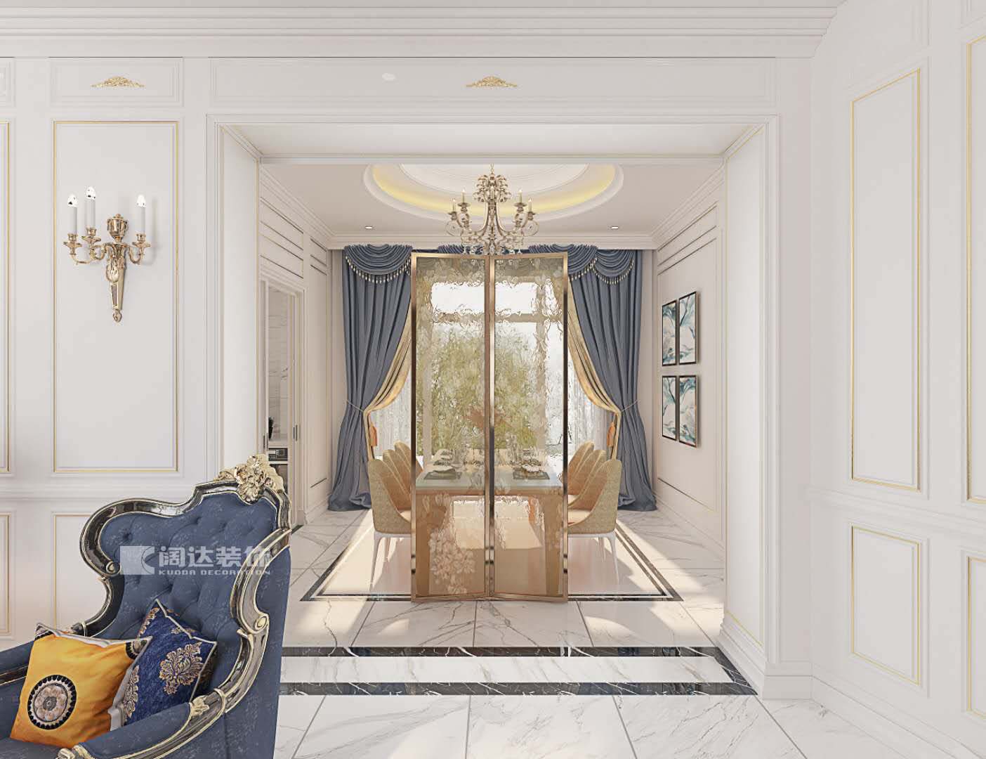 本案設(shè)計(jì)為法式風(fēng)格,法式雕花和線條的運(yùn)用,凸顯出空間的奢華感和貴族氣息,家居軟裝的色彩搭配,讓家有了舒適和浪漫的情調(diào),從傳統(tǒng)的繁奢到現(xiàn)代的簡(jiǎn)練;從巴洛克的奢華到洛可可的纖細(xì);從新古典的曼妙到帝政風(fēng)格的恢弘,她不僅是一門藝術(shù),也象征著一種情懷,家,正是如此!