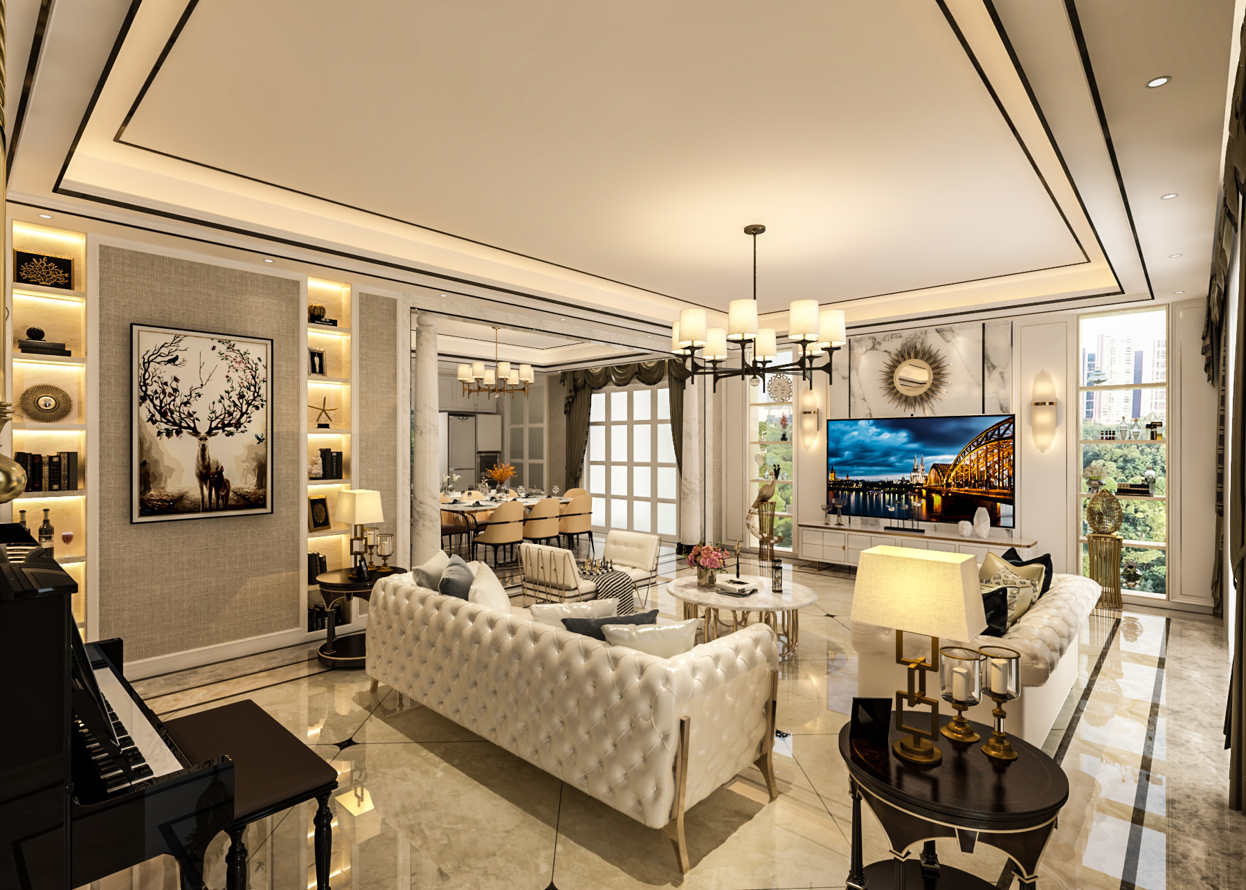 簡歐帶著一點(diǎn)輕奢的感覺,整個(gè)公共空間線條硬朗,材質(zhì)感比較強(qiáng),私密空間一溫馨舒適為主。同風(fēng)格案例:更多>>