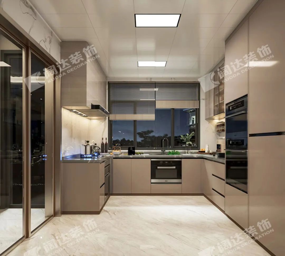 客廳:溫暖明亮,經(jīng)濟耐看是本案的主要需求之一,剔除了法式復(fù)雜的線形后,融入了現(xiàn)代溫暖明亮的暖色系風格,材質(zhì)上搭配巖板,給予了視覺上的沖擊力,成為業(yè)主期待的理想之家。