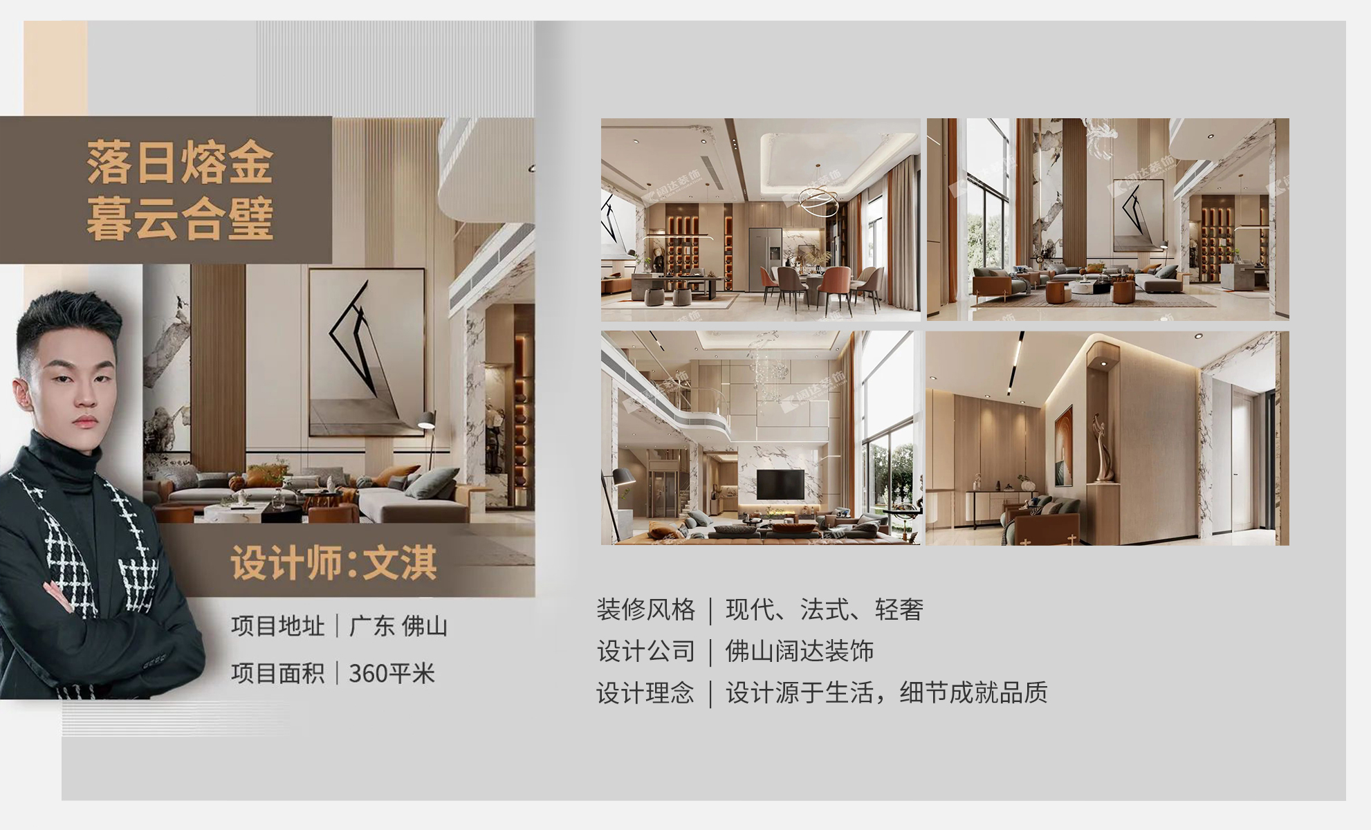 | 設(shè)計風格 | 現(xiàn)代、法式、輕奢 | 戶型案例 | 案例面積 | 360m2 | |
