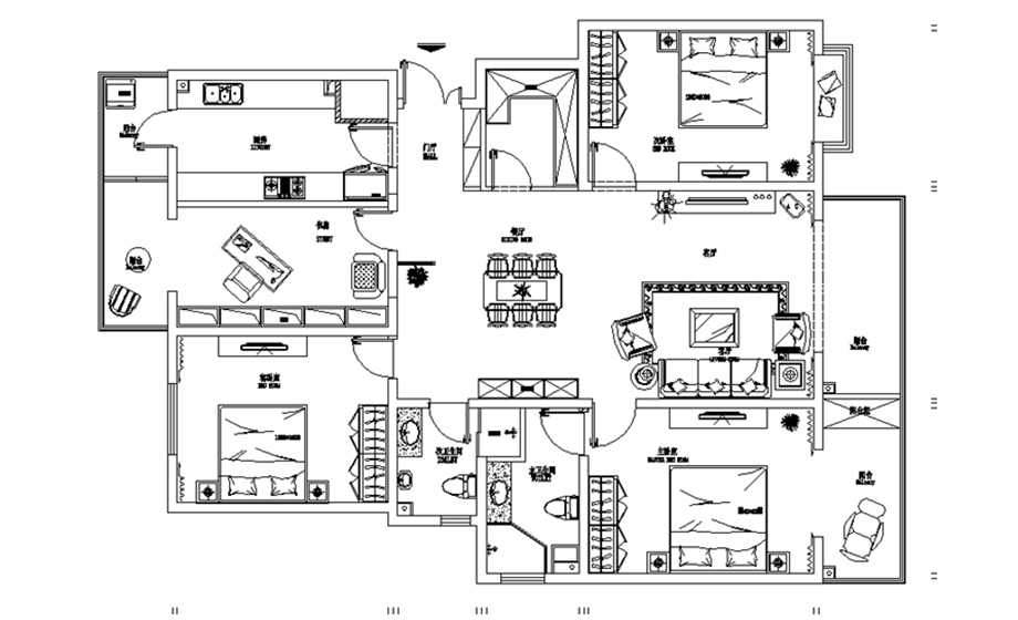 整套房屋的風格為美式簡約,居室色彩主調(diào)為溫和色。家具為古典彎腿式,家具、門、窗漆成白色。擅用各種花飾、豐富的木線變化、富麗的窗簾帷幄是西式傳統(tǒng)室內(nèi)裝飾的固定模式,空間環(huán)境多表現(xiàn)出華美、富麗、浪漫的氣氛。