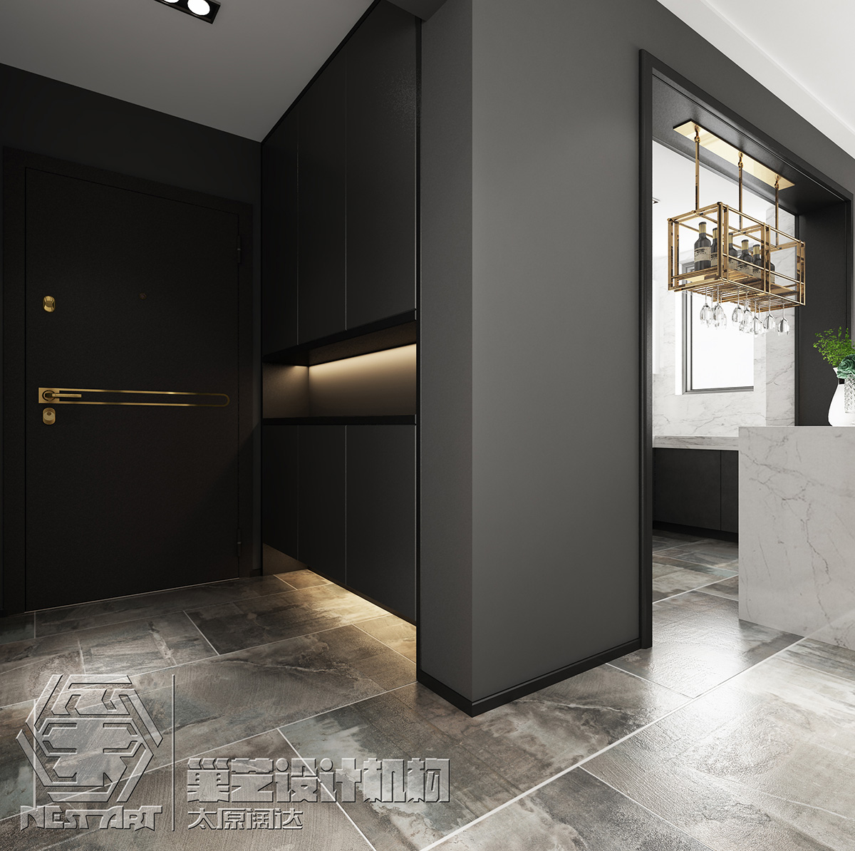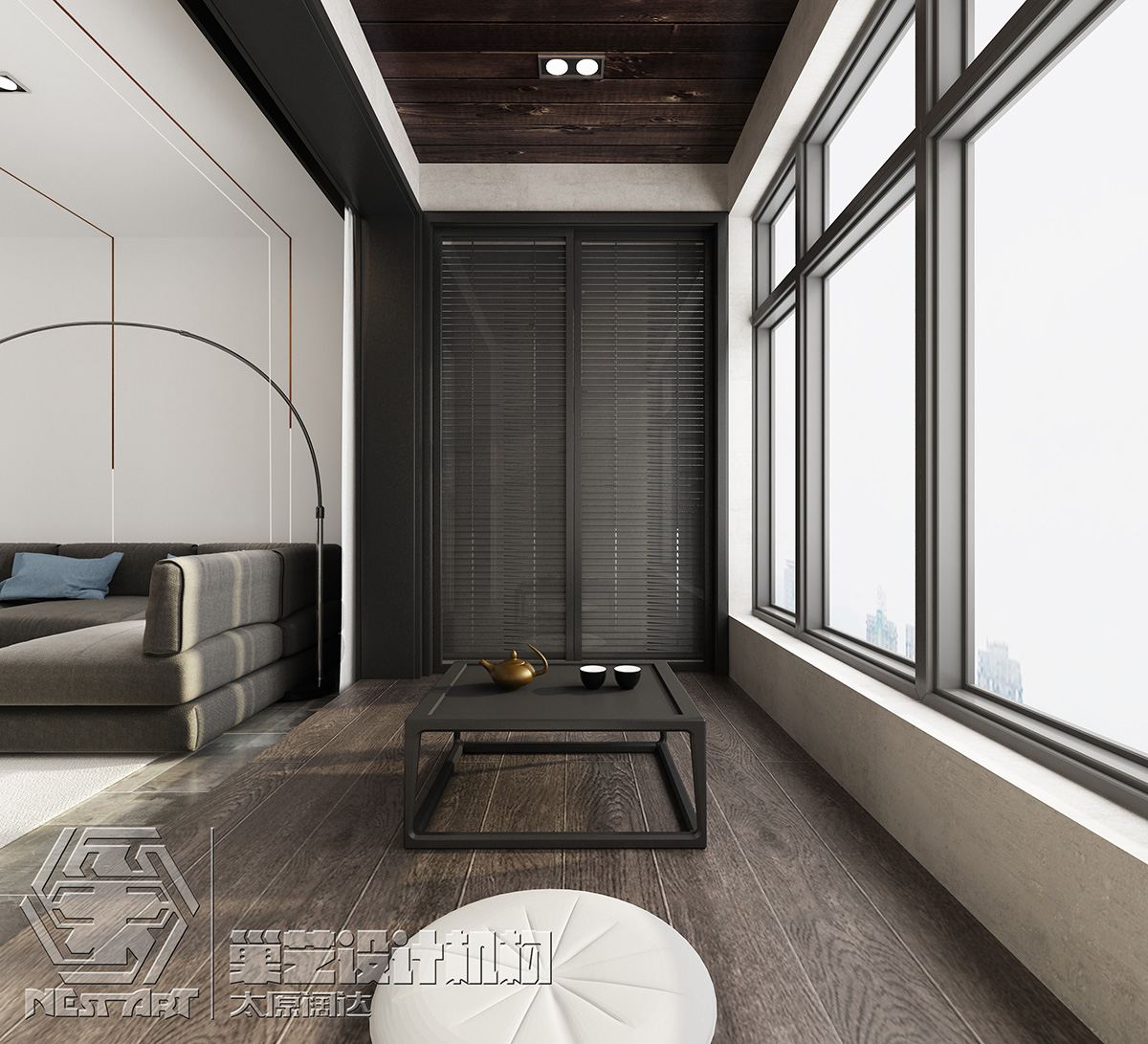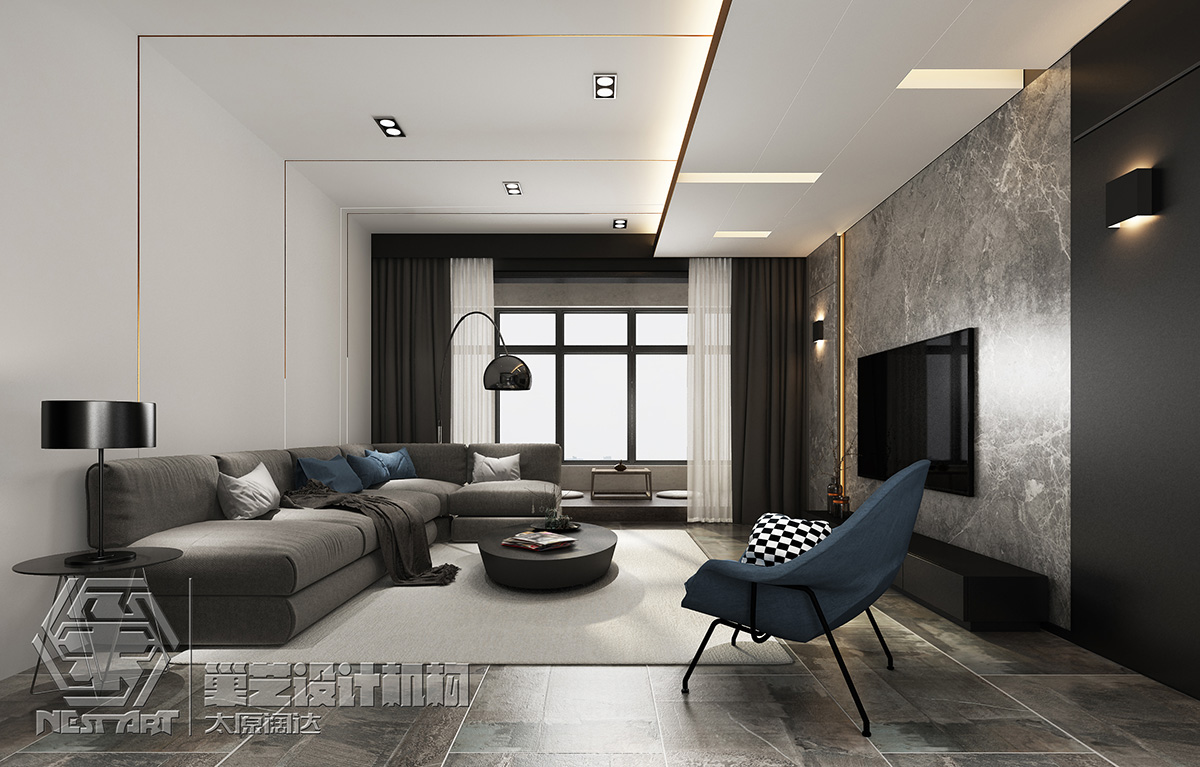居家場(chǎng)域以沉靜色調(diào)為基底,融匯復(fù)合媒材,營(yíng)造自然質(zhì)樸氛圍;另外亦希望透過(guò)重整空間格局,讓室內(nèi)達(dá)到通透敞亮的效果。再將視線(xiàn)移至天花板的特殊結(jié)構(gòu)設(shè)計(jì),除劃分不同場(chǎng)域及活動(dòng)范疇,同時(shí)創(chuàng)造了視覺(jué)的延展性及豐富性。客廳與餐廳在此流動(dòng)空間的設(shè)計(jì)下,無(wú)形間促進(jìn)家人情感的共享與交流;并于百葉窗開(kāi)掩時(shí)的光暈映照下,灑落一抹靜謐柔美,形塑家的溫馨暖韻。